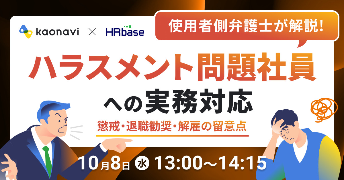 セミナー名 | 【使用者側弁護士が解説!】ハラスメント問題社員への実務対応 ~懲戒・退職勧奨・解雇の留意点~ |