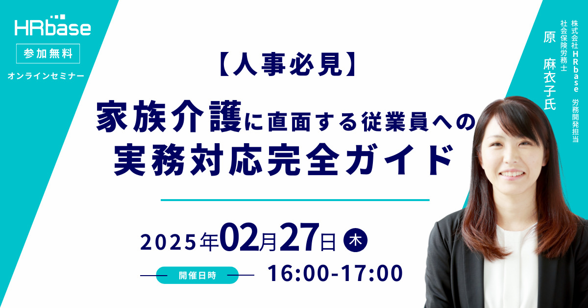 | セミナー名 | 【人事必見】家族介護に直面する従業員への実務対応完全ガイド |